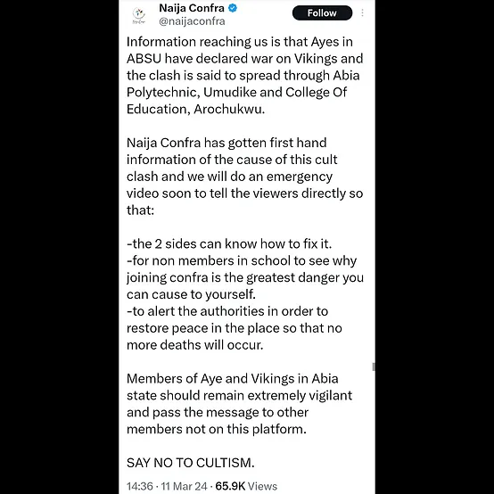 According to the statement, “On 11/3/2024, a viral video surfaced depicting the murder of Emmanuel Uche, a 500-level student of Abia State University, in front of Miracle Lodge, Uturu.